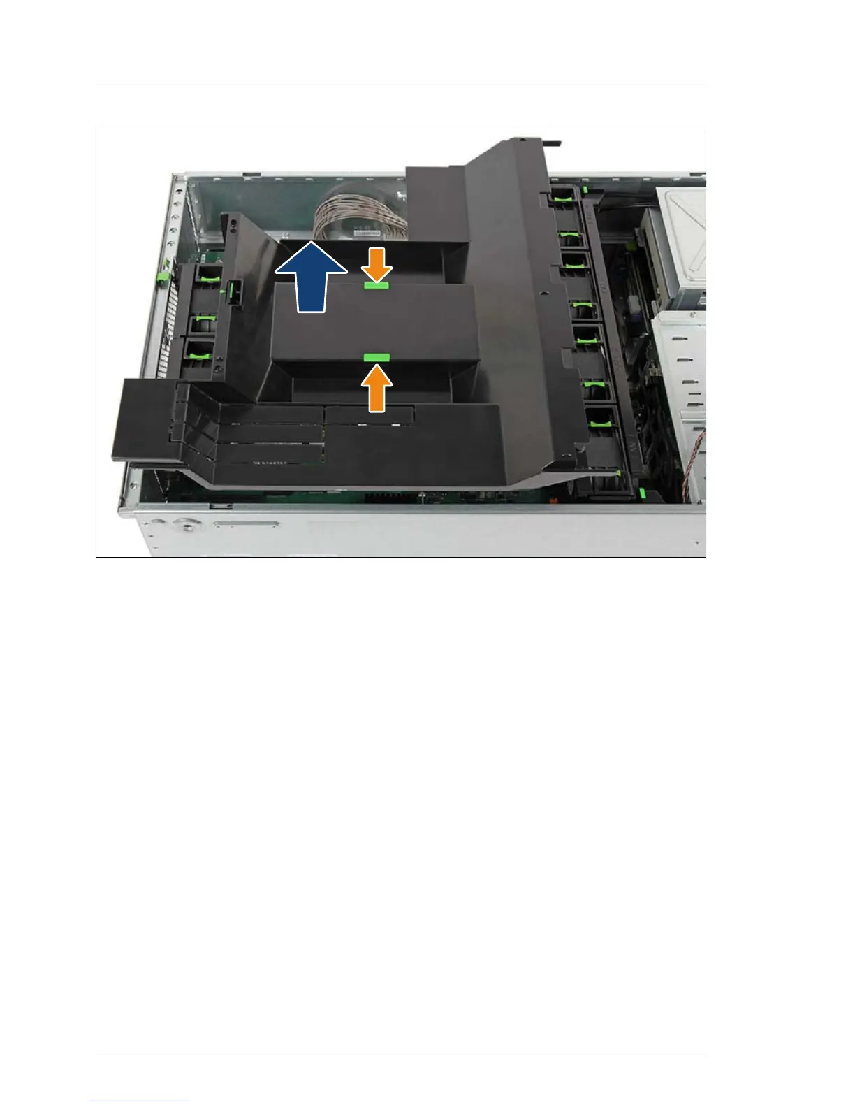 Ê Hold the air duct by the two green grips (see orange arrows) and lift it out of