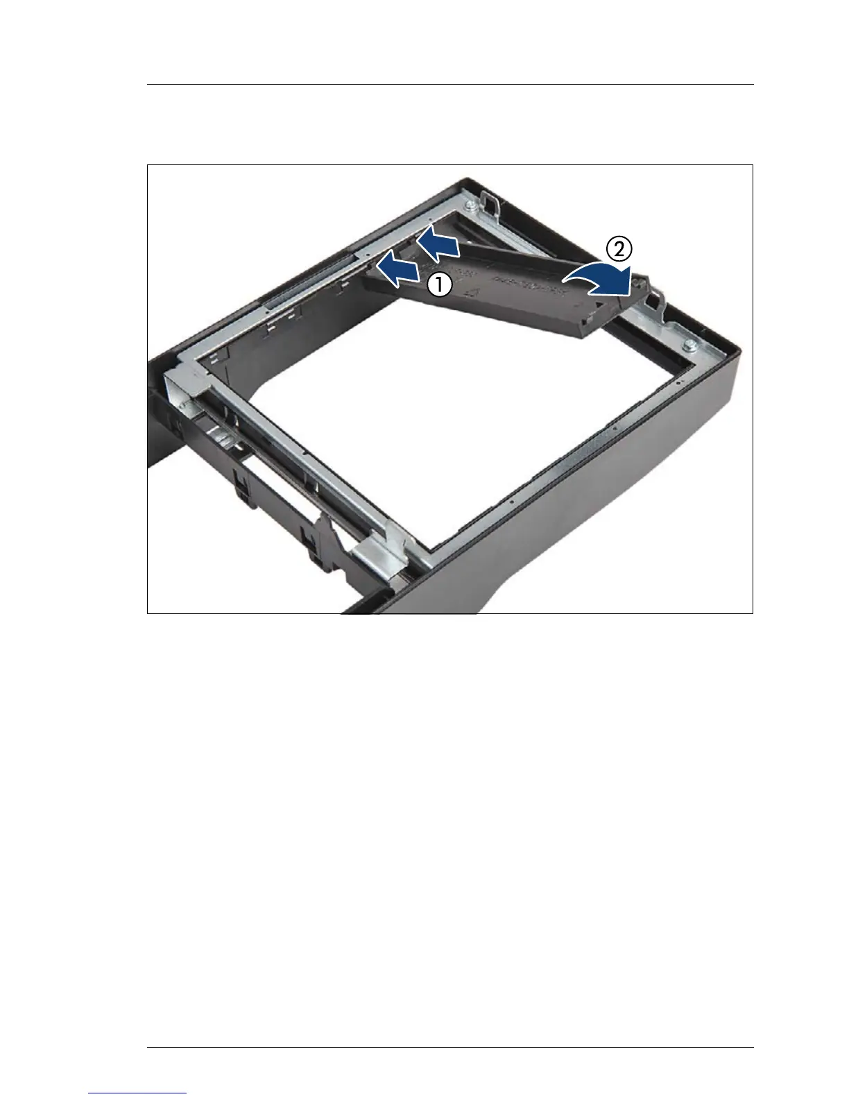 Ê Fold down the accessible drive cover until it snaps in place (2).