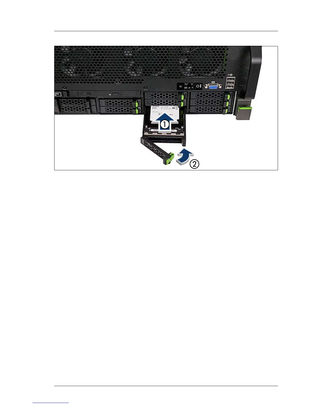Ê Insert the HDD / SSD / PCIe SSD module into a drive bay and carefully push