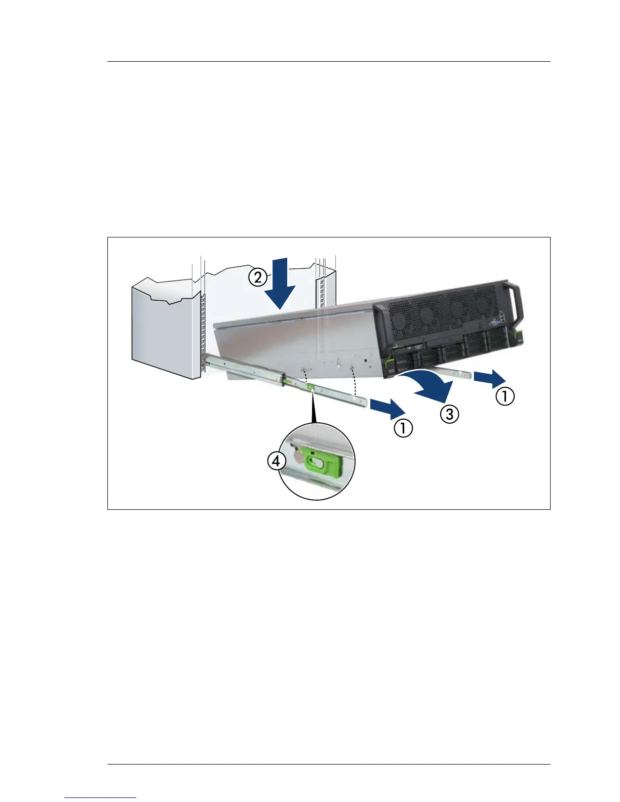 Ê Fold down the server (3). Ensure that all six rack mounting bolts are properly