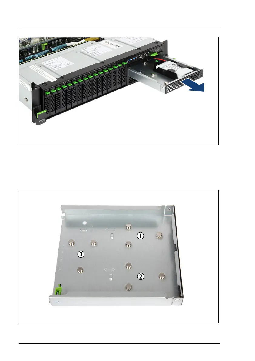 Push the FBU carrier from inside out of the chassis (see arrow).