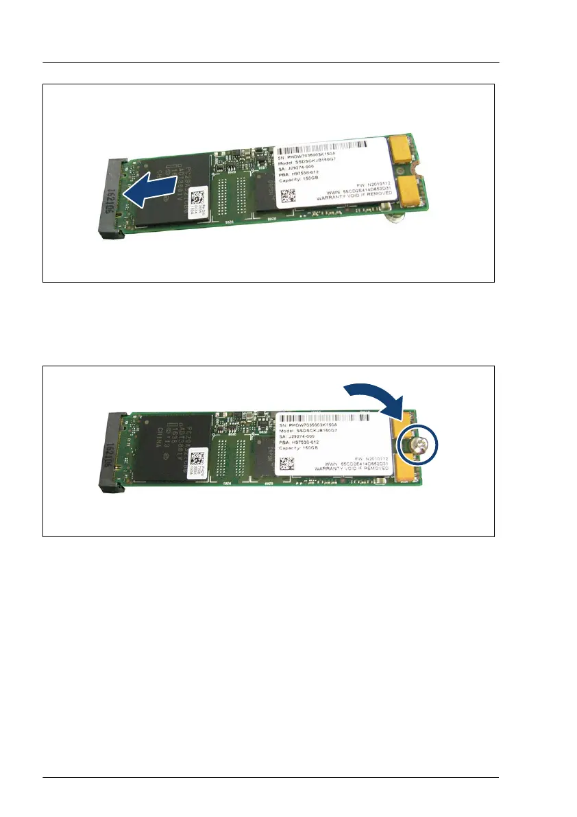 With the label facing up, insert the M.2 SSD into the M.2 slot at a slight