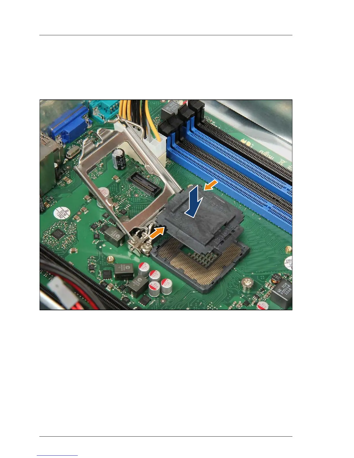 Figure 218: Installing the protective socket cover (defective system board) (A)