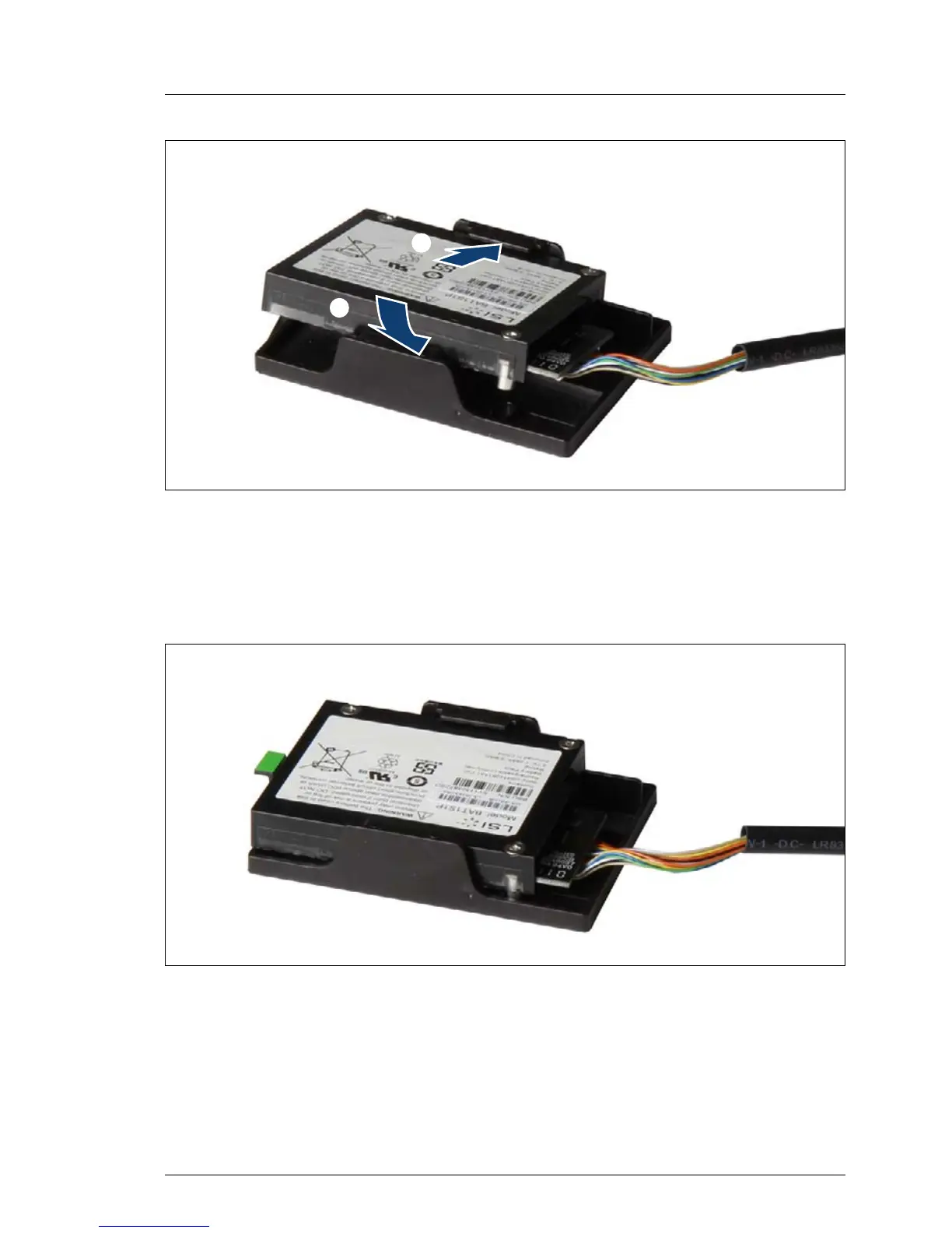 Ê At a slight angle, fit the BBU under the right retaining bracket on the BBU