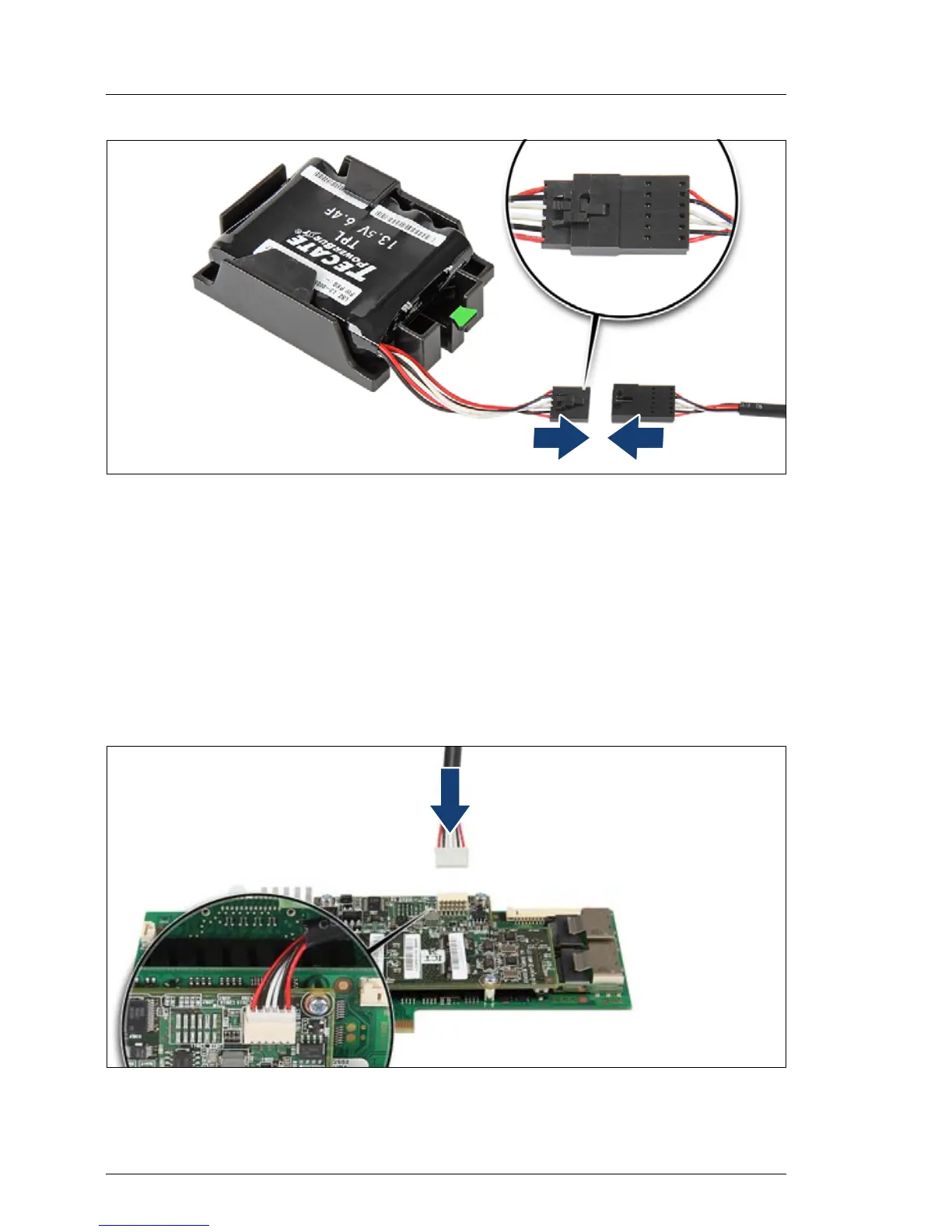 Ê Connect the cable end on the FBU to the FBU adapter cable as shown.