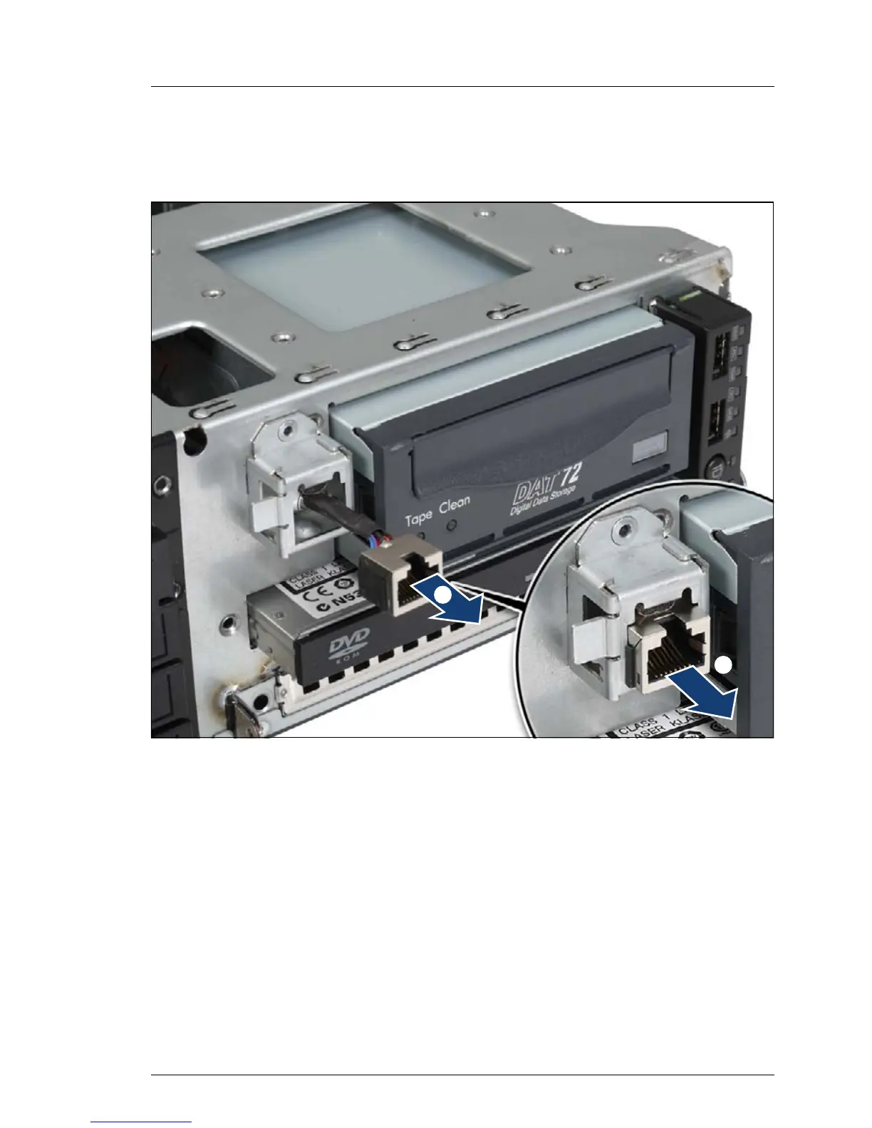 Ê Carefully unlatch the front LAN cable connector from the mounting bracket