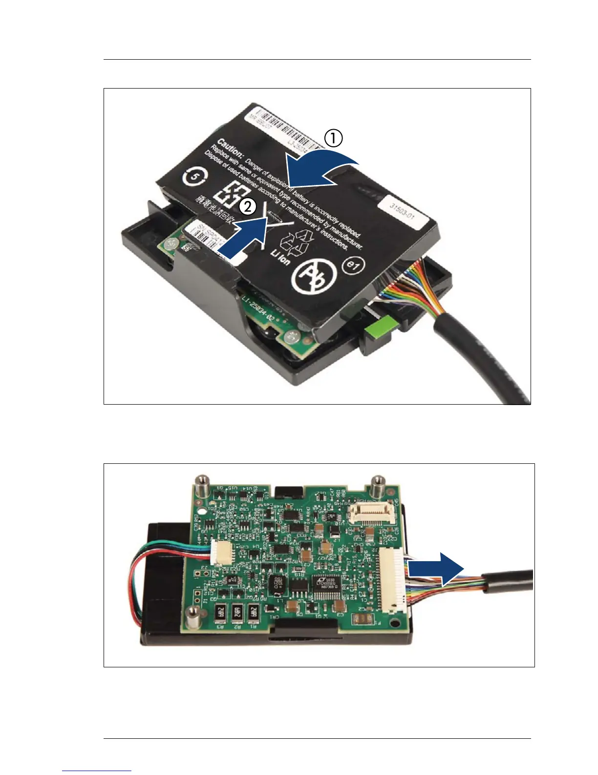 Ê Fold up the BBU (1) and at a slight angle remove it from the BBU holder (2).