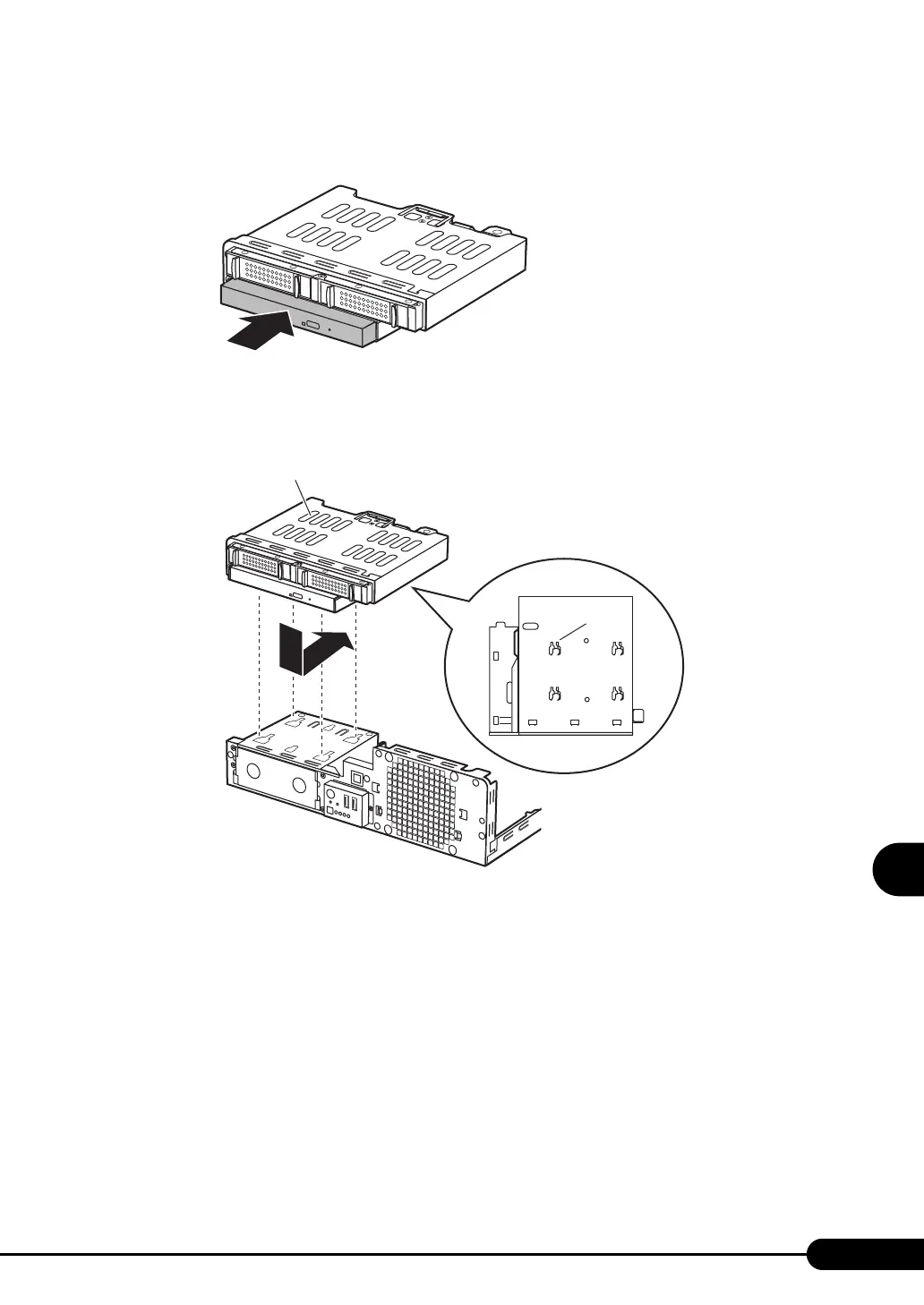 Put the projections on the bottom face of the internal hard disk unit bay / internal CD-ROM drive