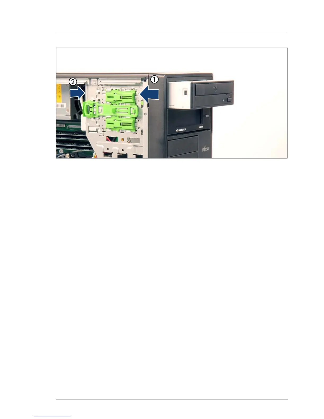 Ê Press the locking latch in the direction of the arrow (1) and press out the