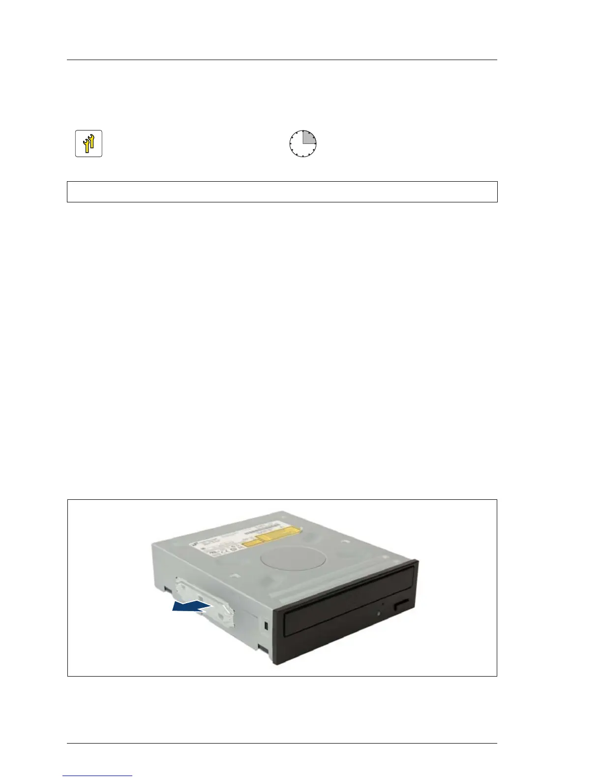 Ê Remove the fixation plate from of the left side of the optical disk drive.