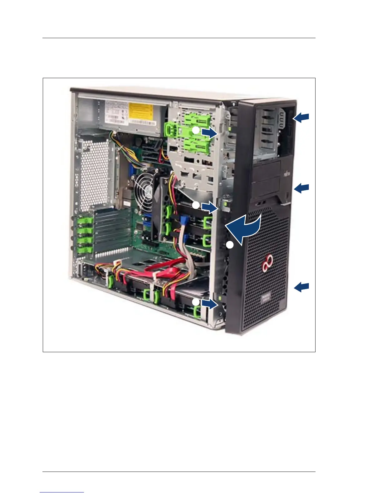 Ê Carefully close the front bezel (2). Make sure that all three locking latches