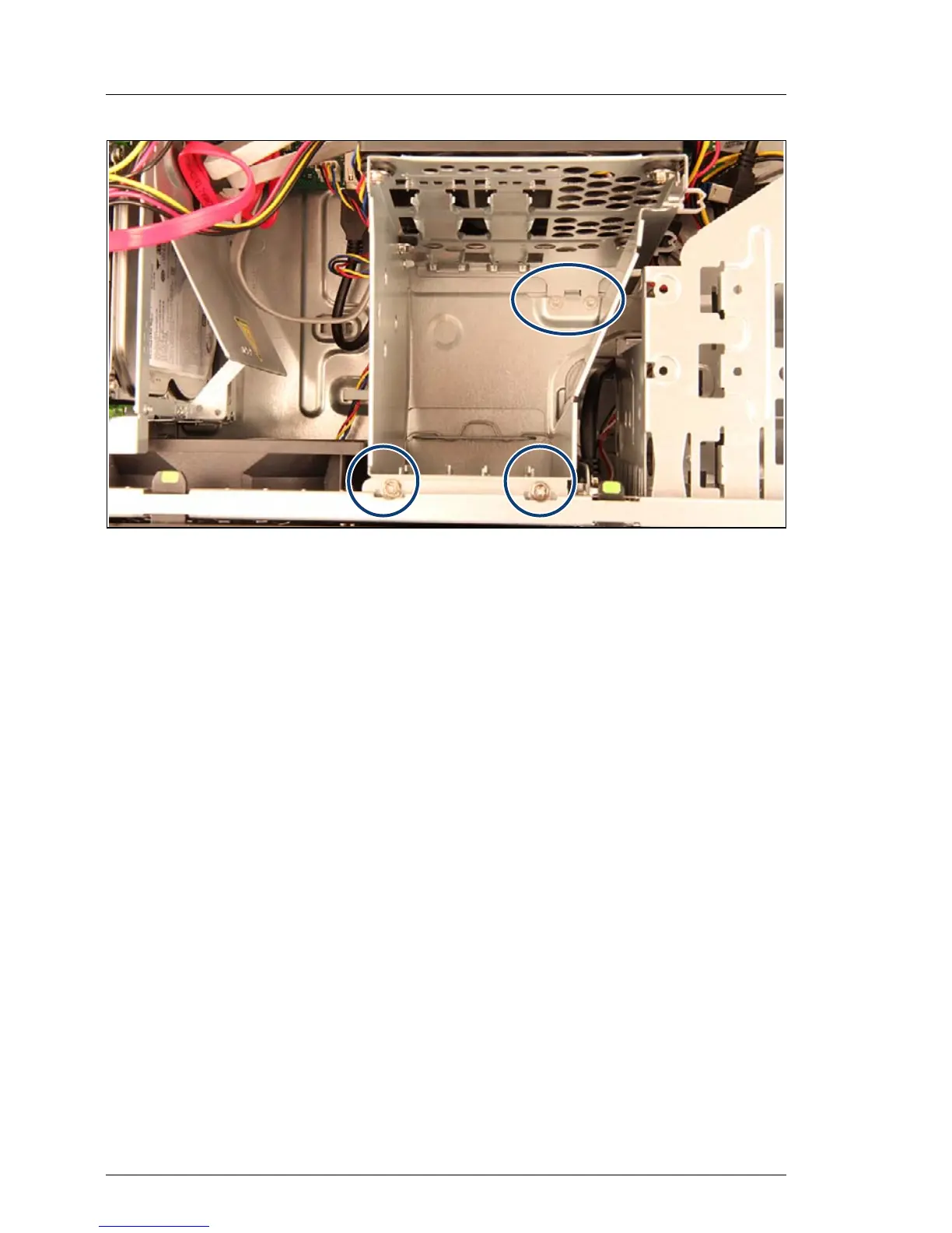 Ê Fasten the four screws (see circles) of the HDD cage.