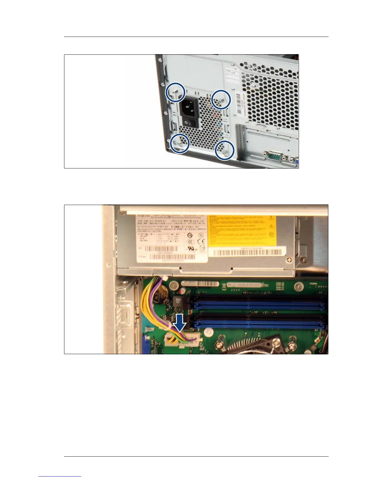 Ê Secure the PSU to the chassis with four screws (see circles).