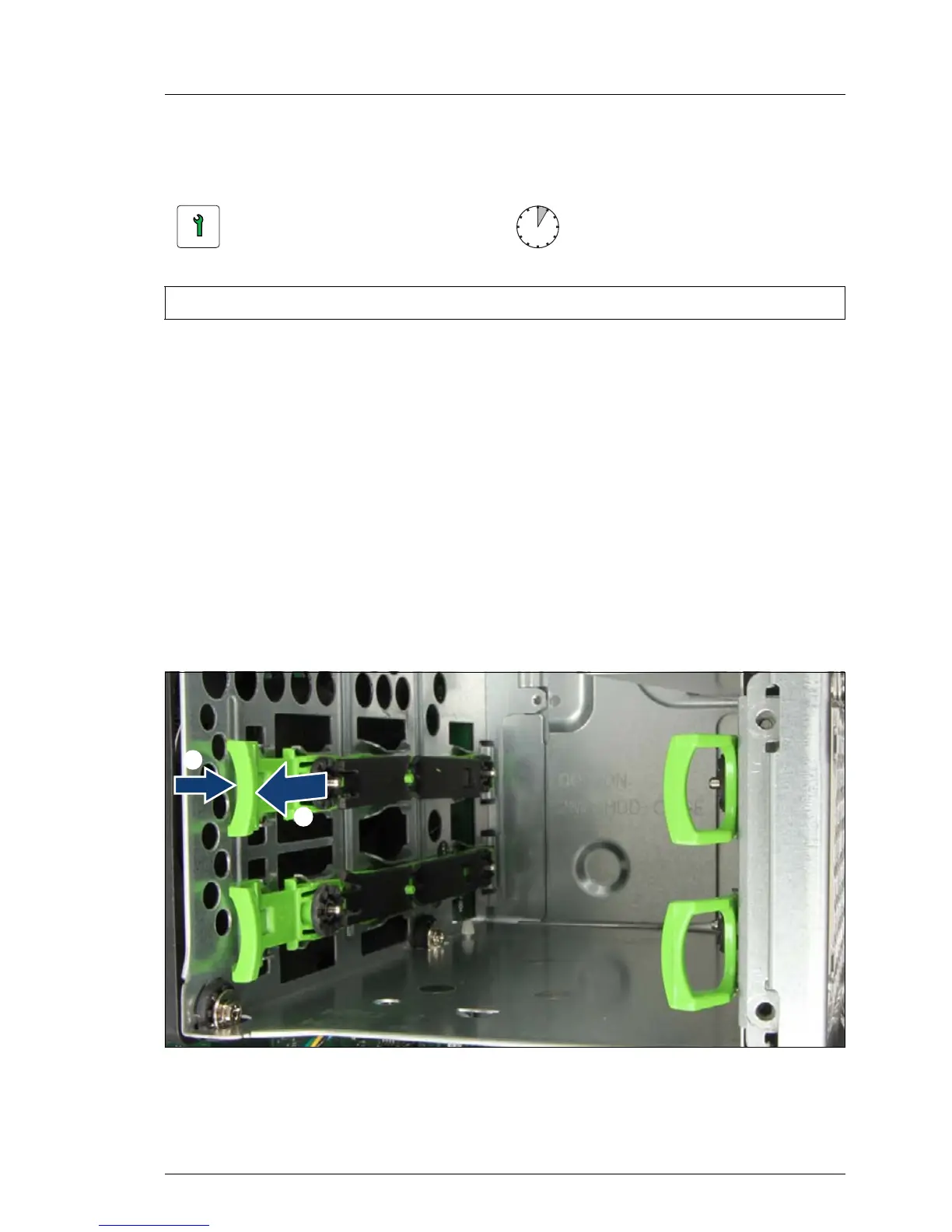 rail out of the desired 3.5-inch HDD installation bay (2).