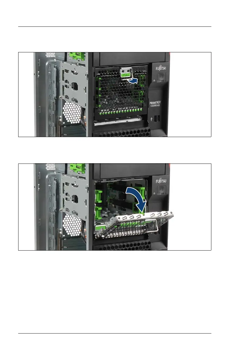 Ê Pull up the lever of the HDD cage door (see arrow).