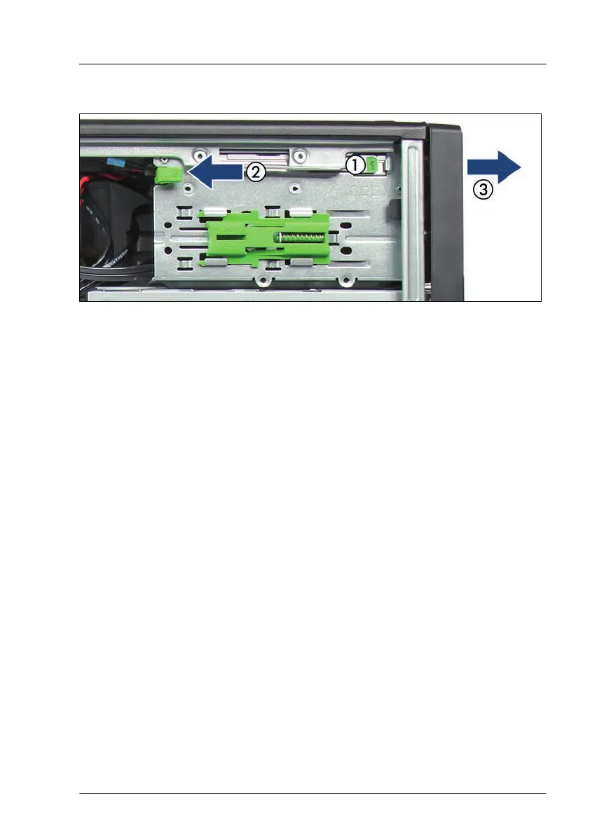 To disengage the ODD, press down on the latch marked "1" (1) while pulling
