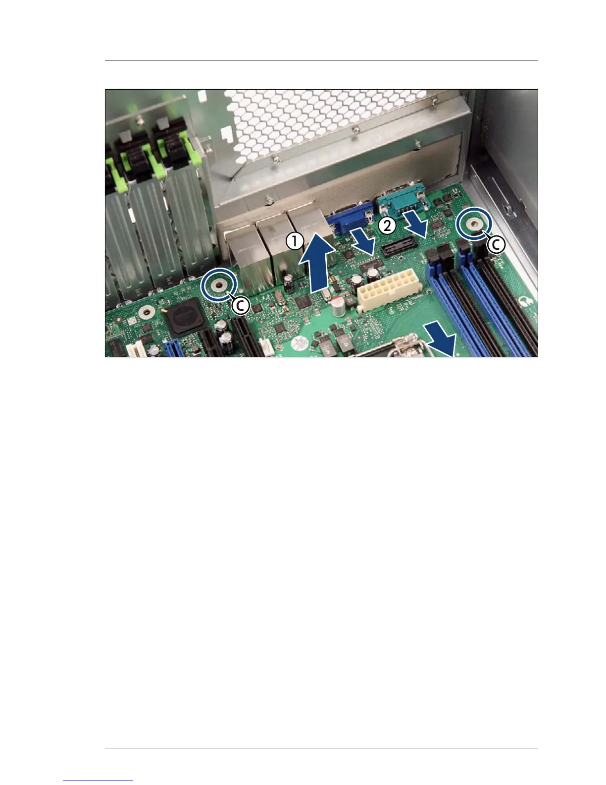 Ê Slightly lift up the system board by the memory module ejectors and a PCI