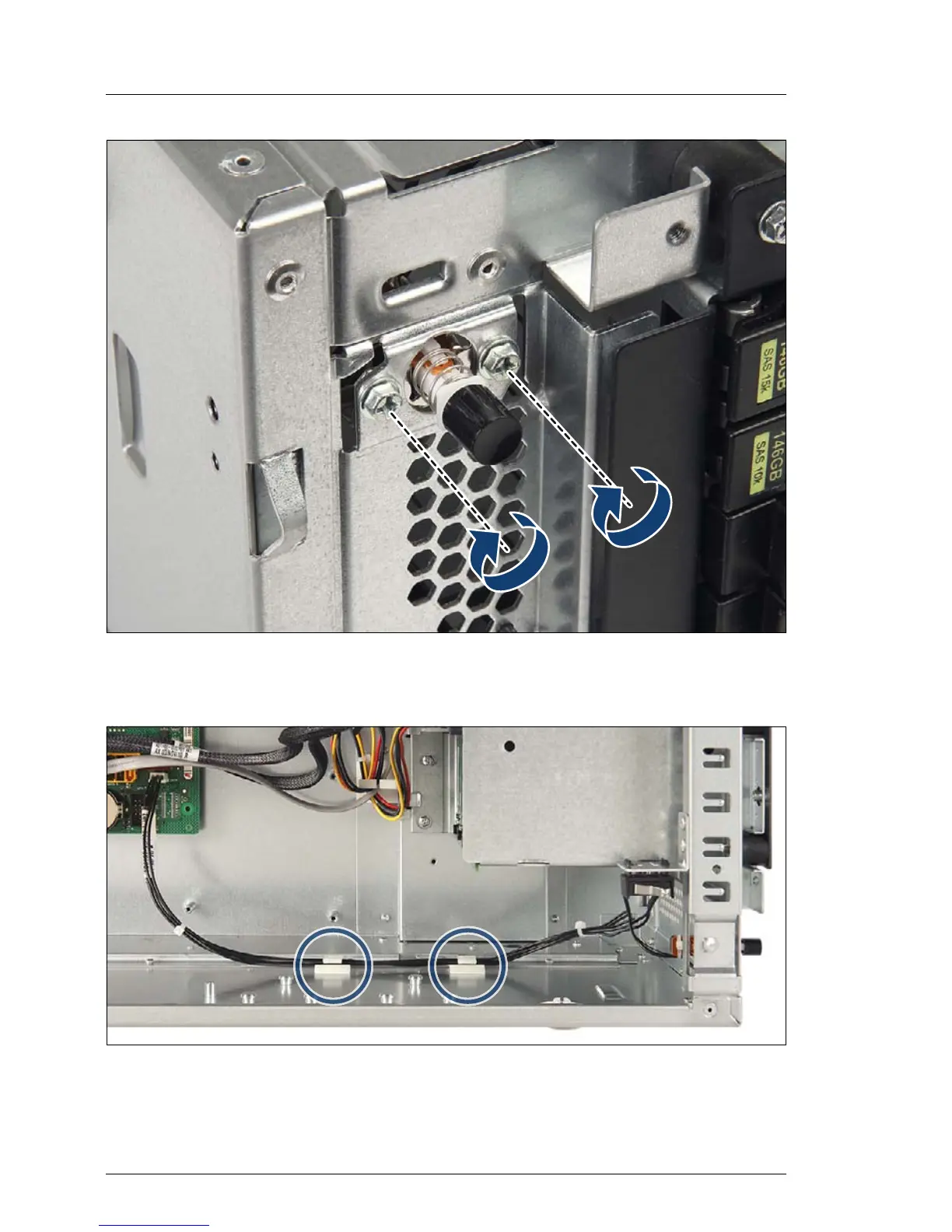 Ê Run the intrusion switch cable through its cable clamps (see circles).