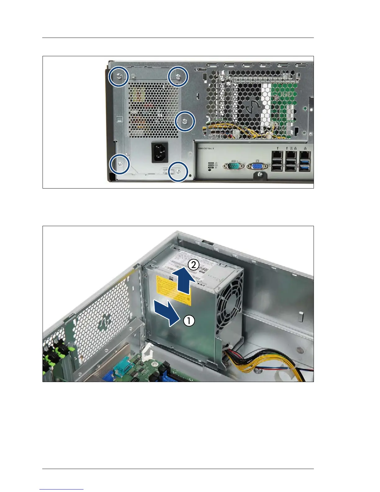 Ê Slide the power supply unit inside the chassis by 3 cm (1).