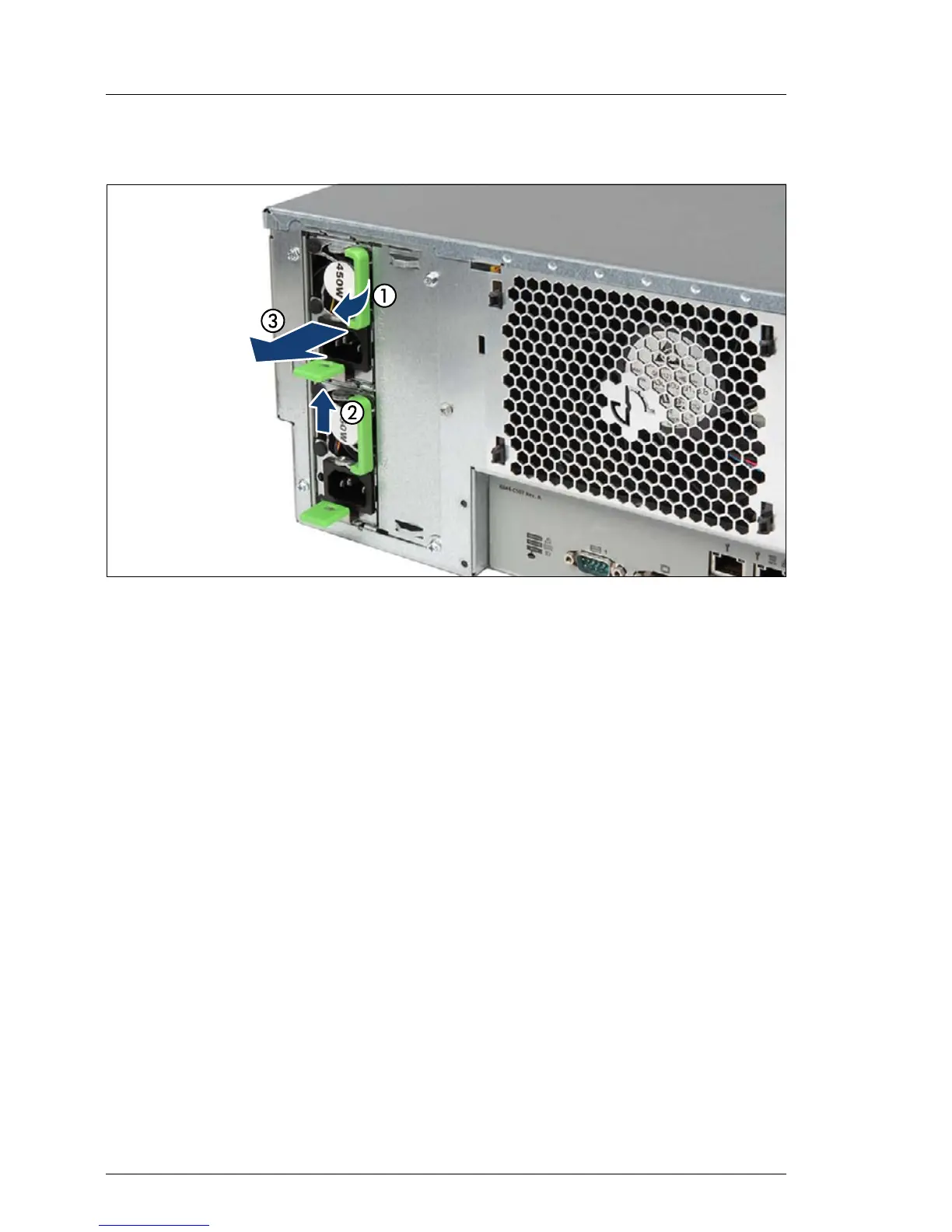 Ê While keeping the green release latch pressed, pull the power supply unit