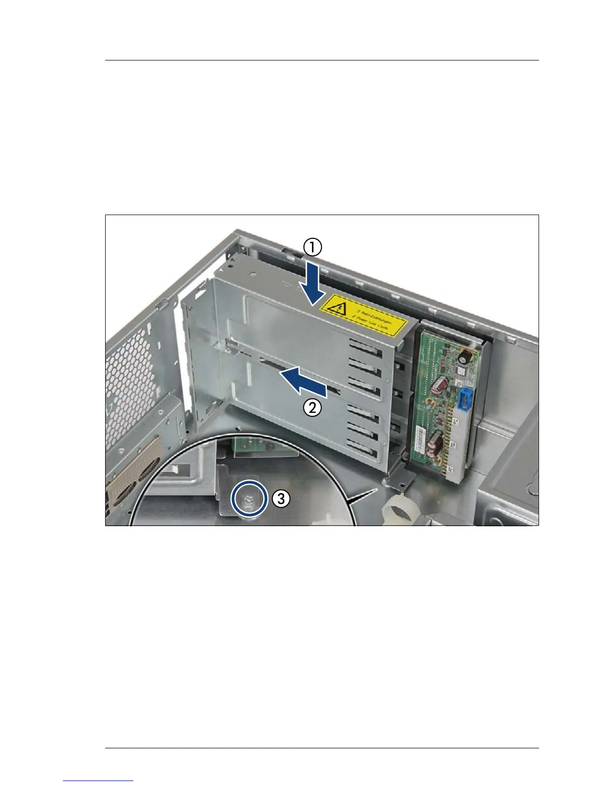Ê Slide the new PSU cage towards the rear of the chassis (2).