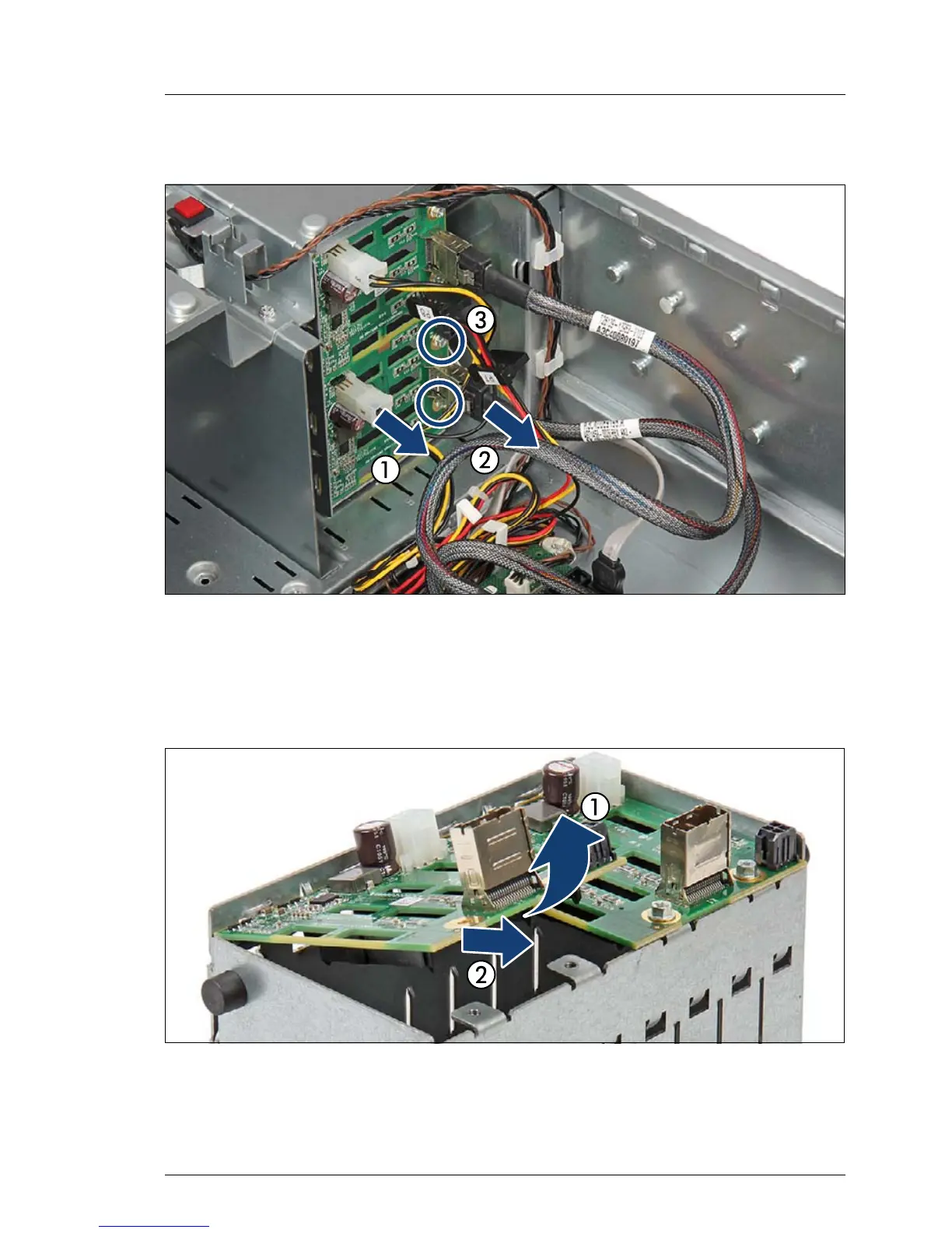 Ê Lift up the SAS / SATA backplane (1) and at a slight angle, remove it from