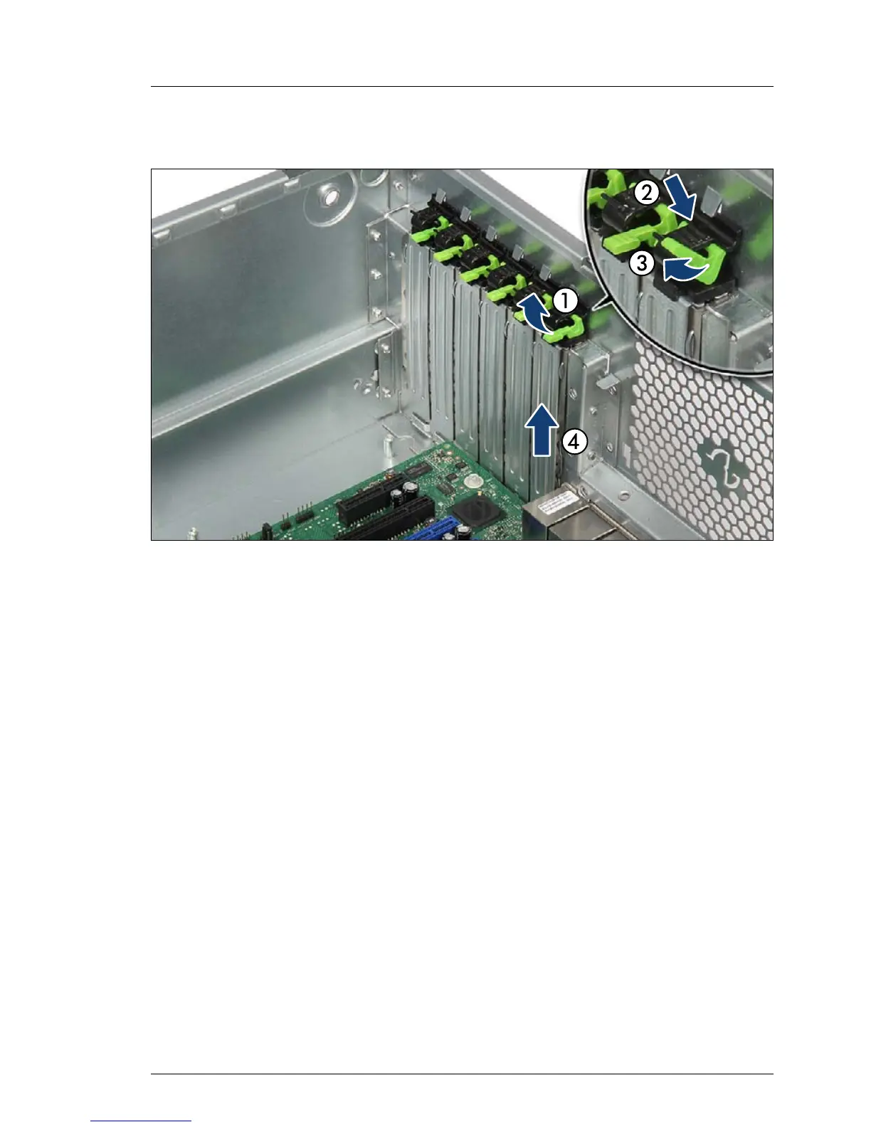 Ê Press down on the slot bracket clamp to disengage it (2).