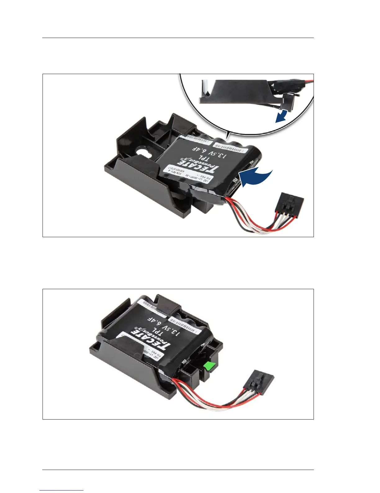 Ê At a slight angle, fit the FBU under the right retaining bracket on the holder.