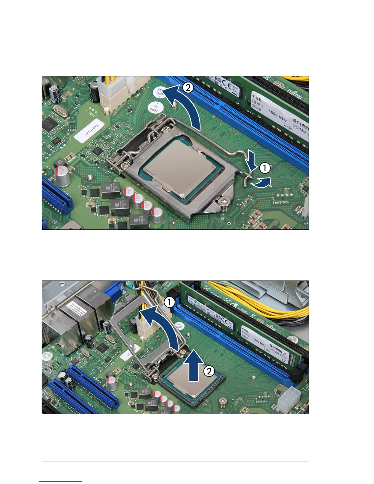 Ê Rotate the socket lever to lift the load plate away from the socket (1).