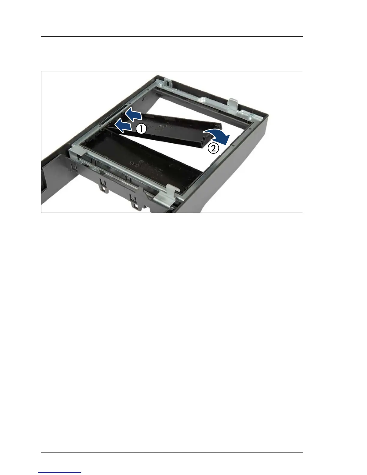 Ê Fold down the accessible drive cover until it snaps in place (2).