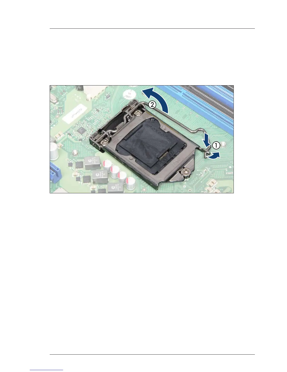 Figure 183: Unlatching the socket lever (new system board)