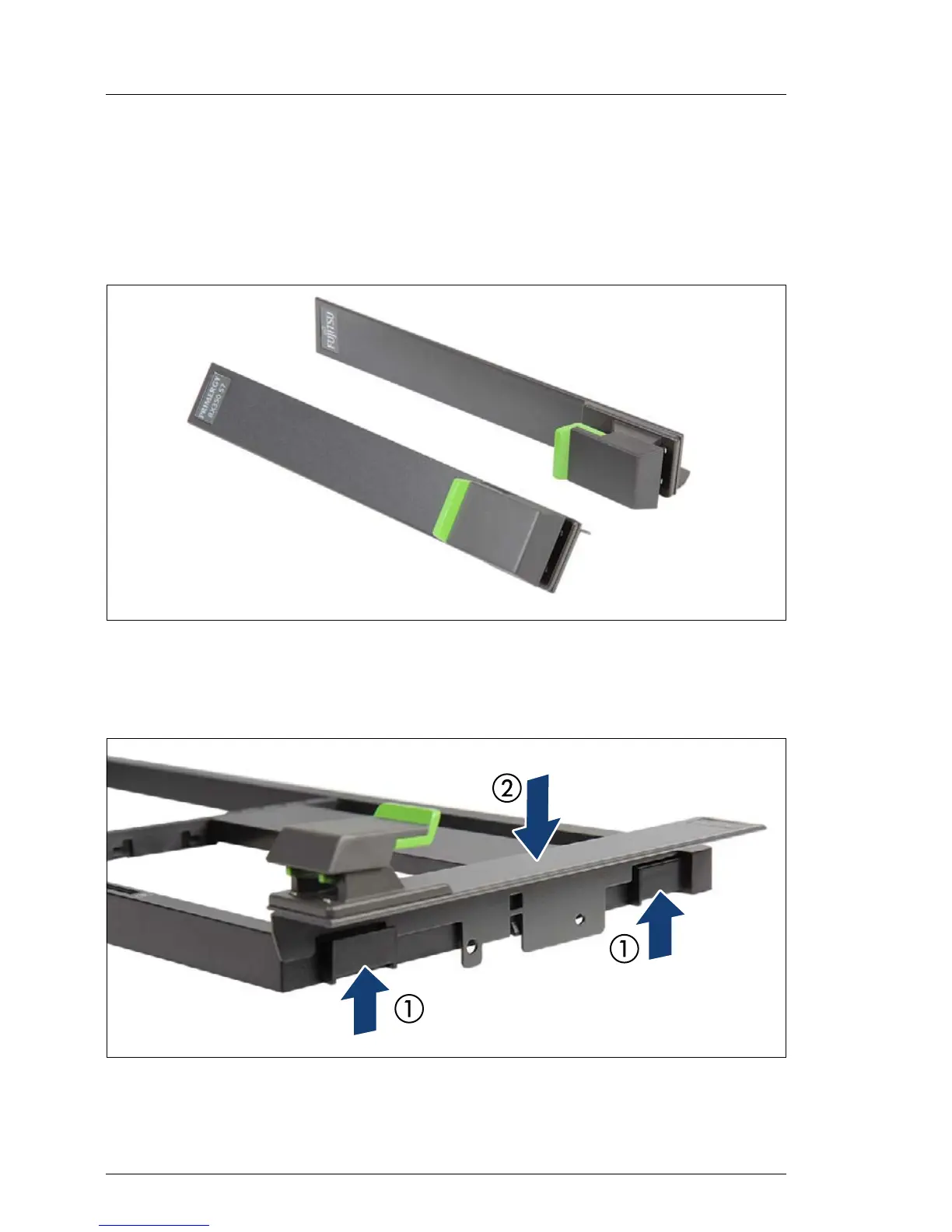Ê Fit the rack mounting bracket on the two hooks on the rack front bezel (1).