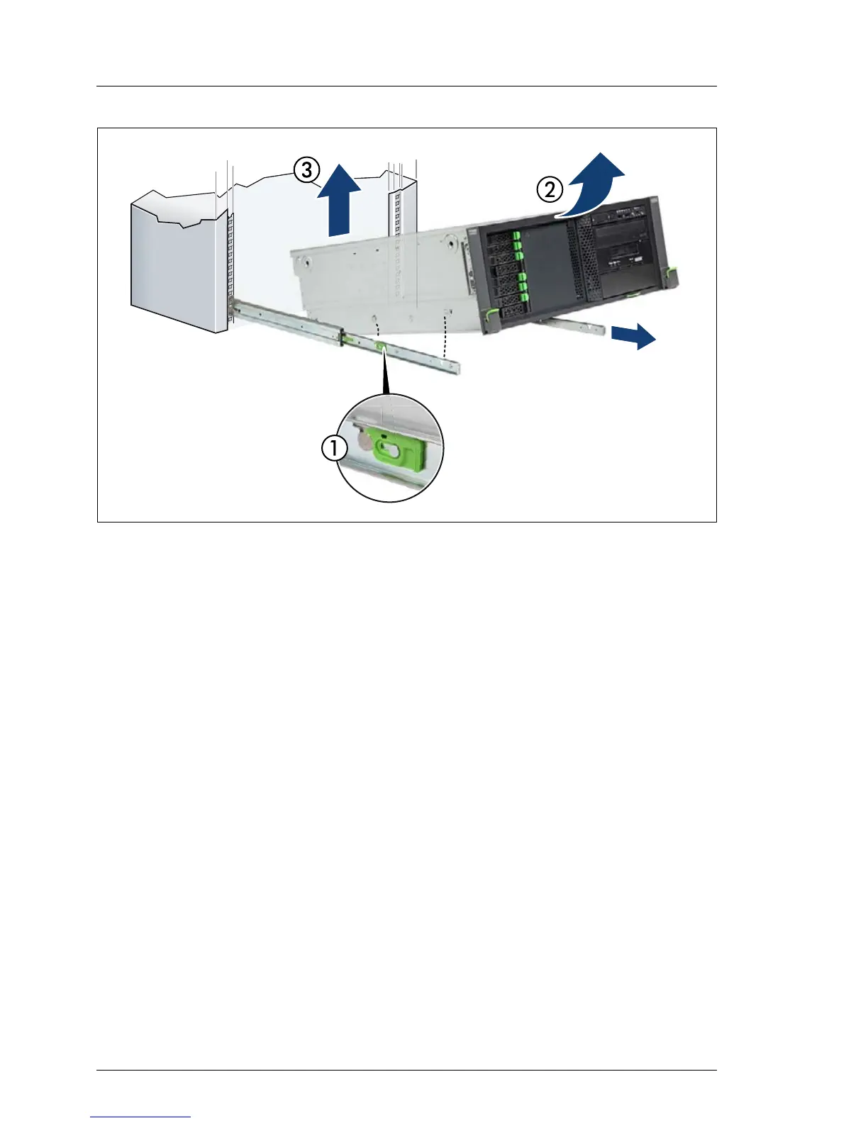 Ê Lift the server out of the rear mounting points (3) and place it on an even