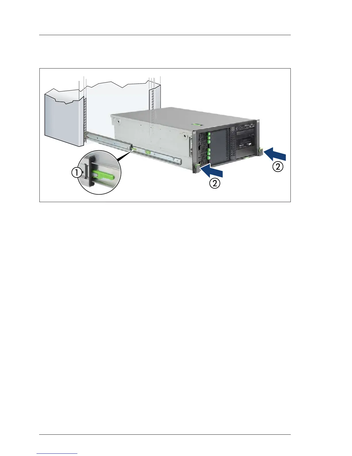 Ê Slide the server inside the rack as far as it will go (2) until the quick release