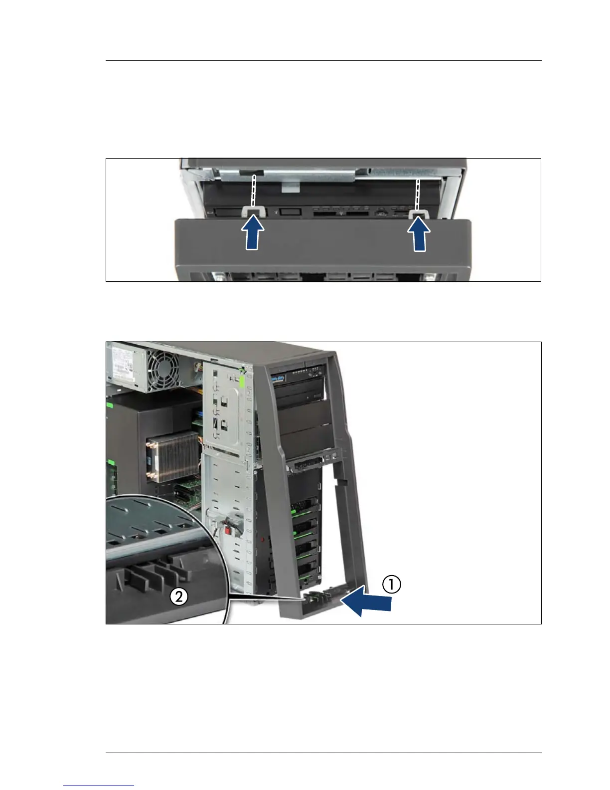 Ê Hook the two tabs of the front cover into the notches in the chassis.