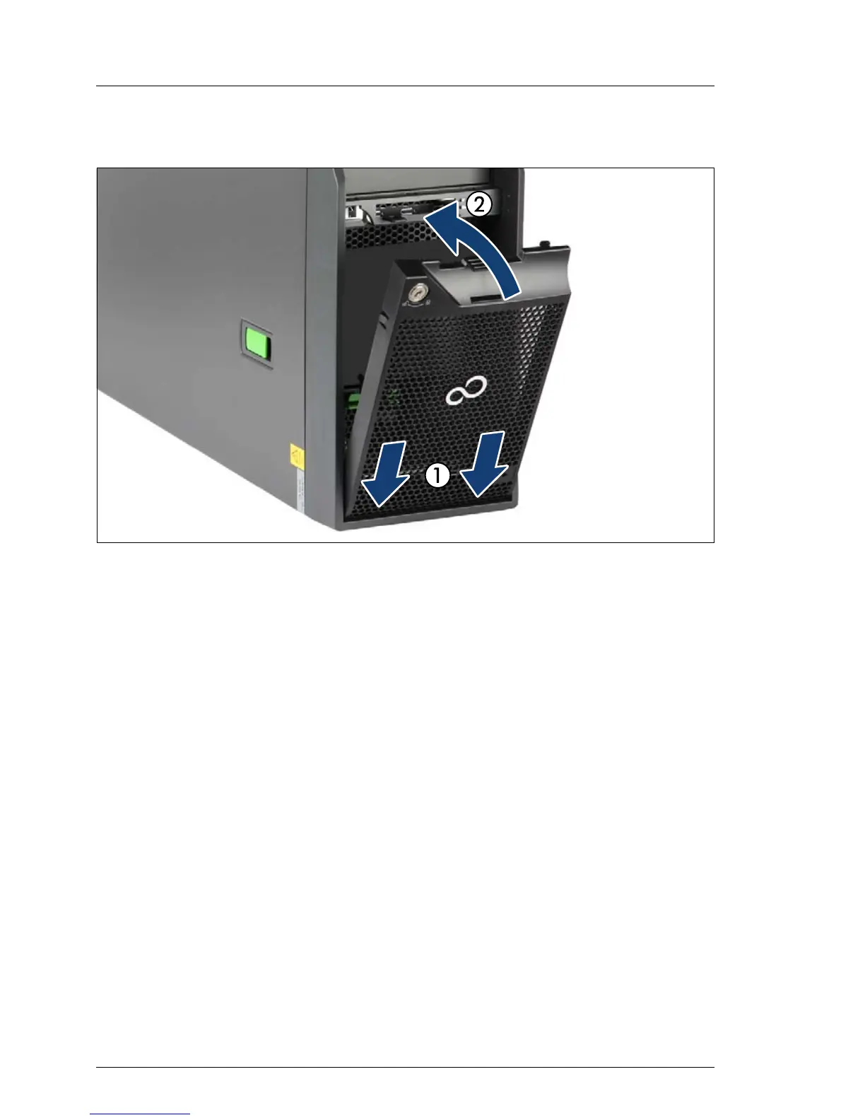 Ê Insert the HDD bay cover into the front cover as shown (1).