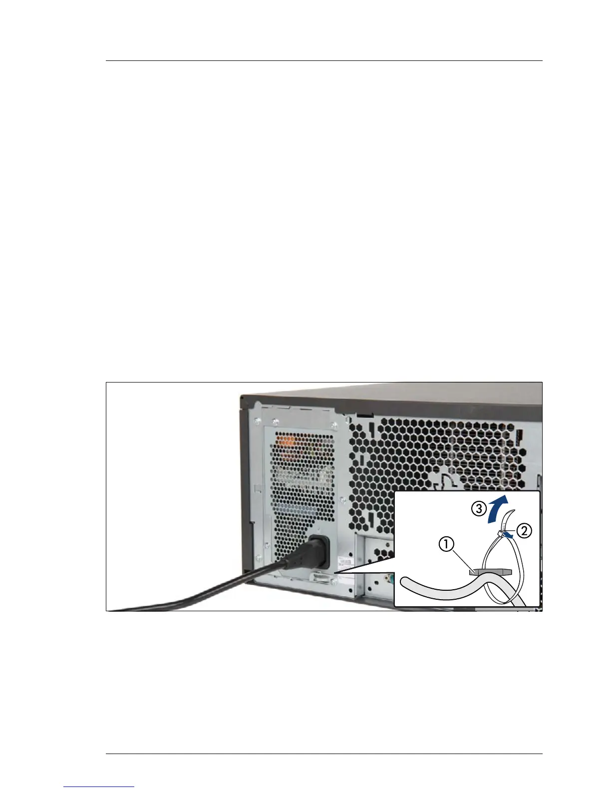Ê Close the cable tie around the power cord (2) and pull tight (3) to secure the