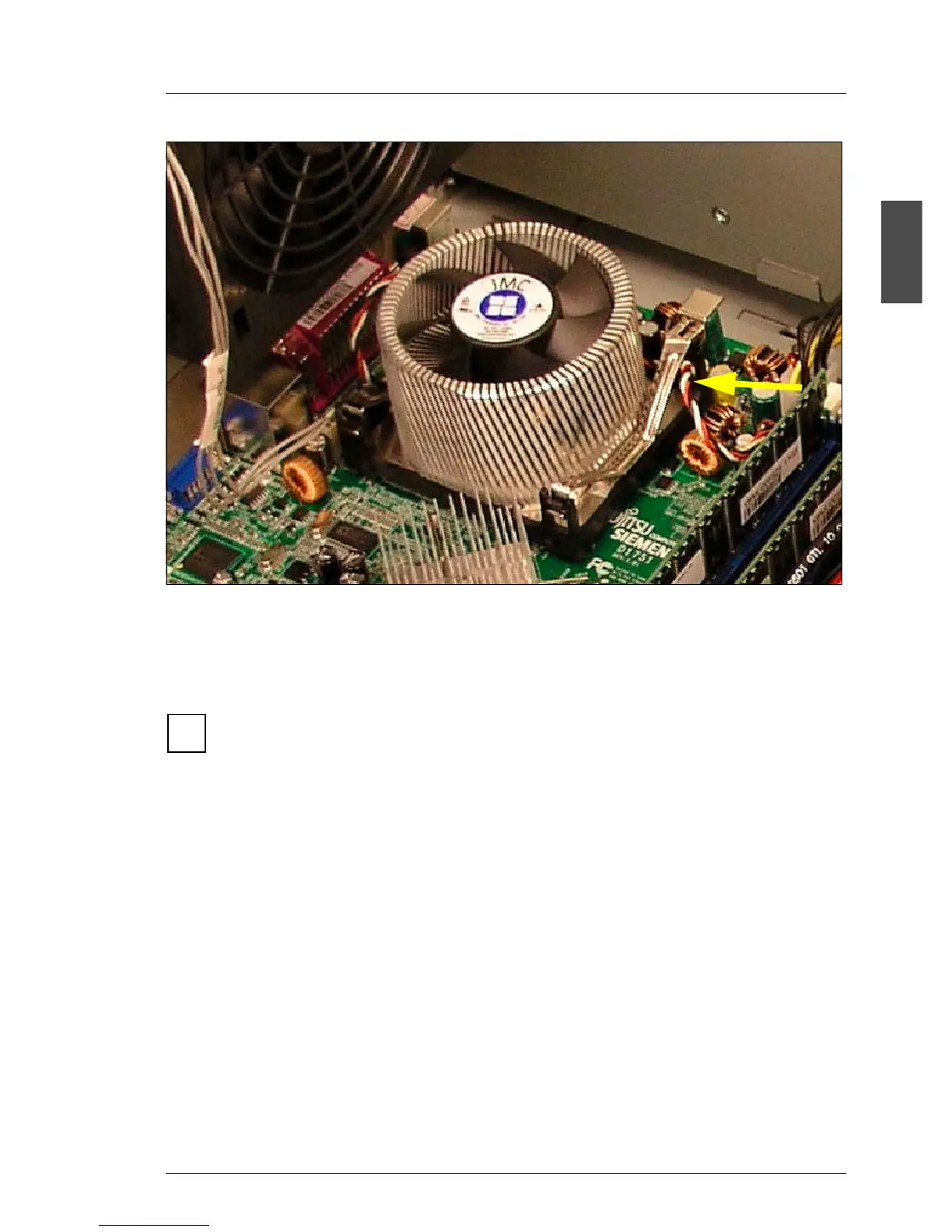Ê Pass the processor fan cable through the retaining clip (see arrow).