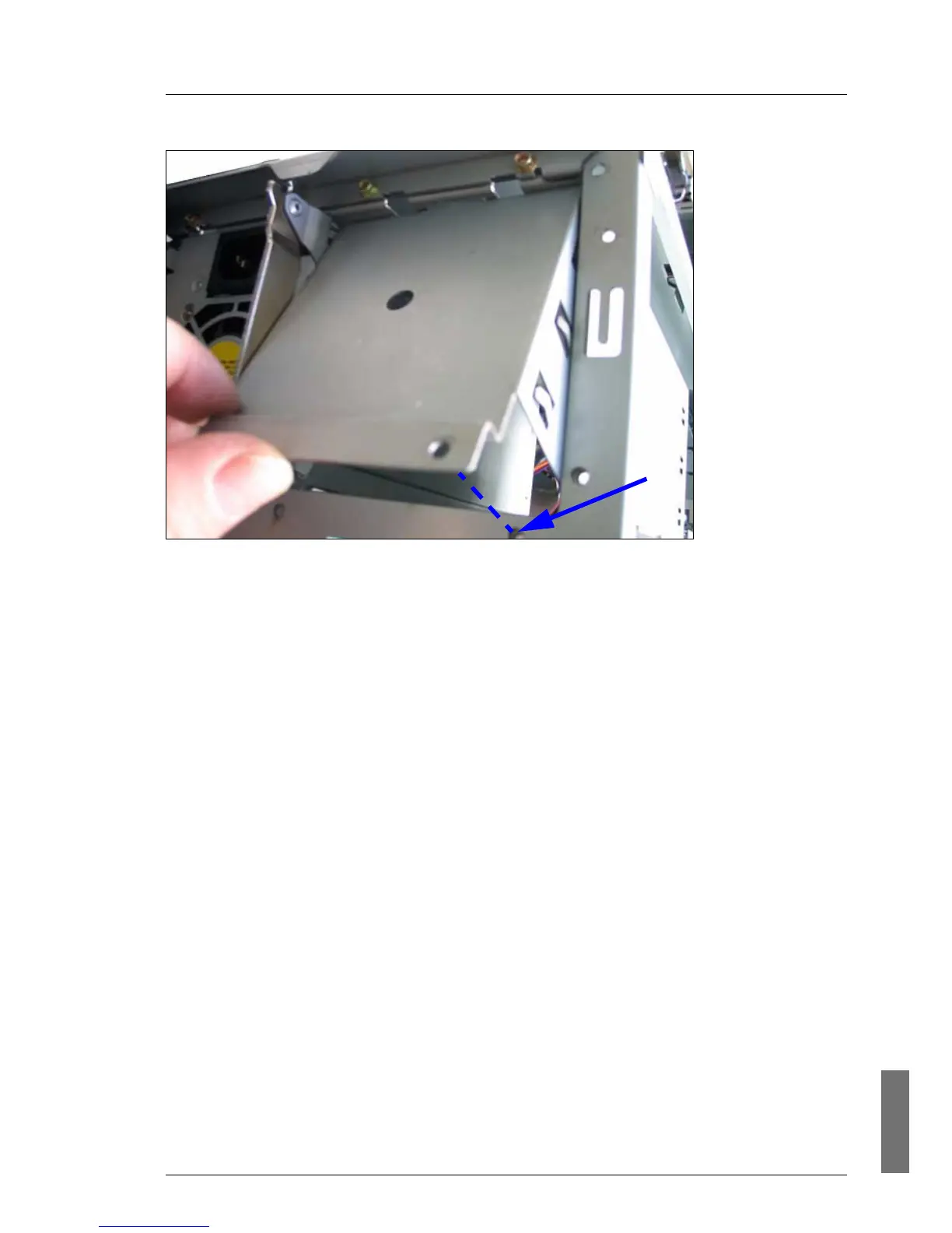 Hook the top side of the dummy cover into the chassis, after this swivel the