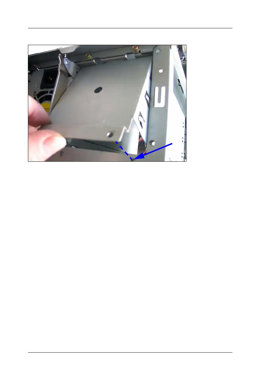 Hook the top side of the dummy cover into the chassis, after this swivel the