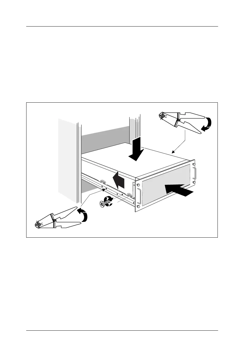 Ê Lift the server onto the two projecting telescopic rails (1).