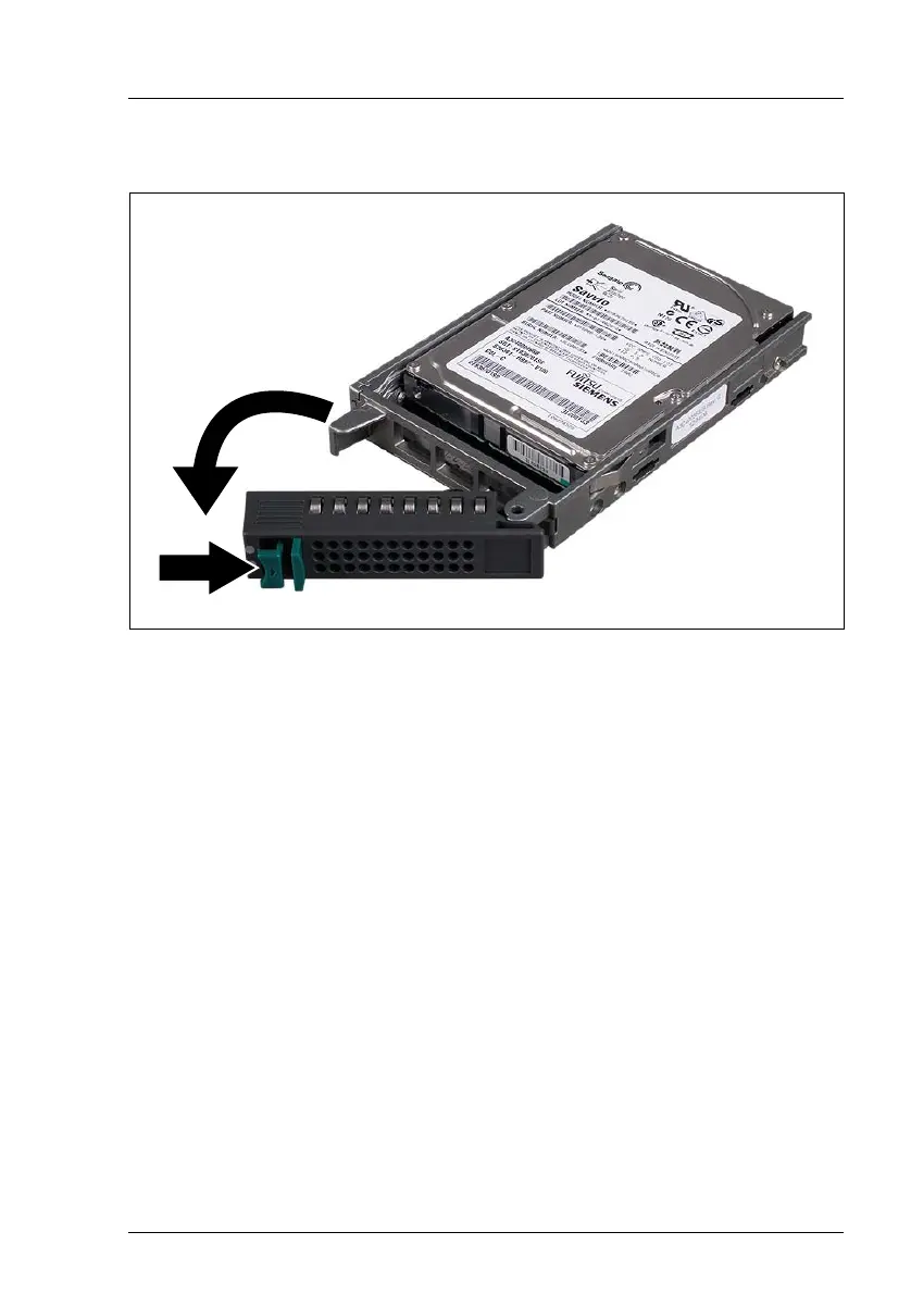 Ê Push the handle of the HDD module fully in the direction of the arrow (2).