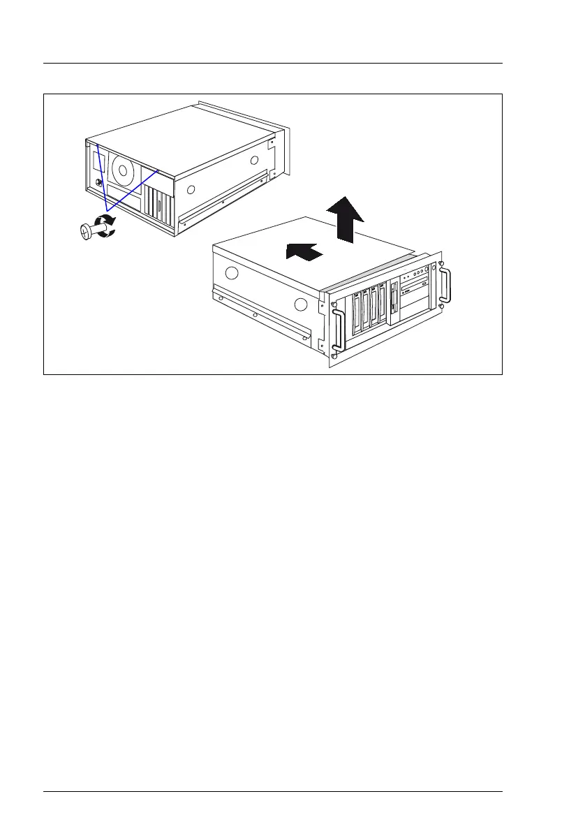 Ê Unlock the top cover by removing the two screws on the server rear (1).