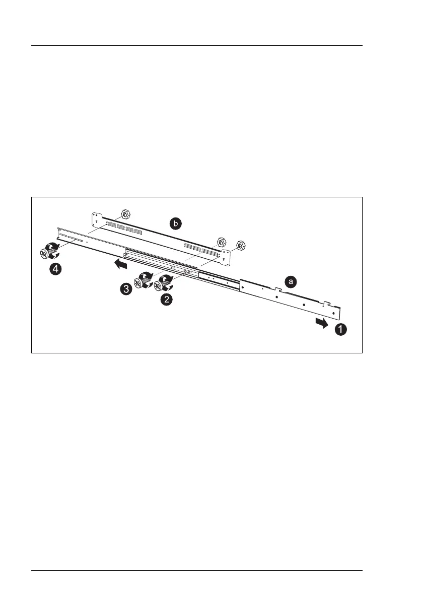 Ê As shown in the figure, place the telescopic rail (a) on the carrier rail (b).