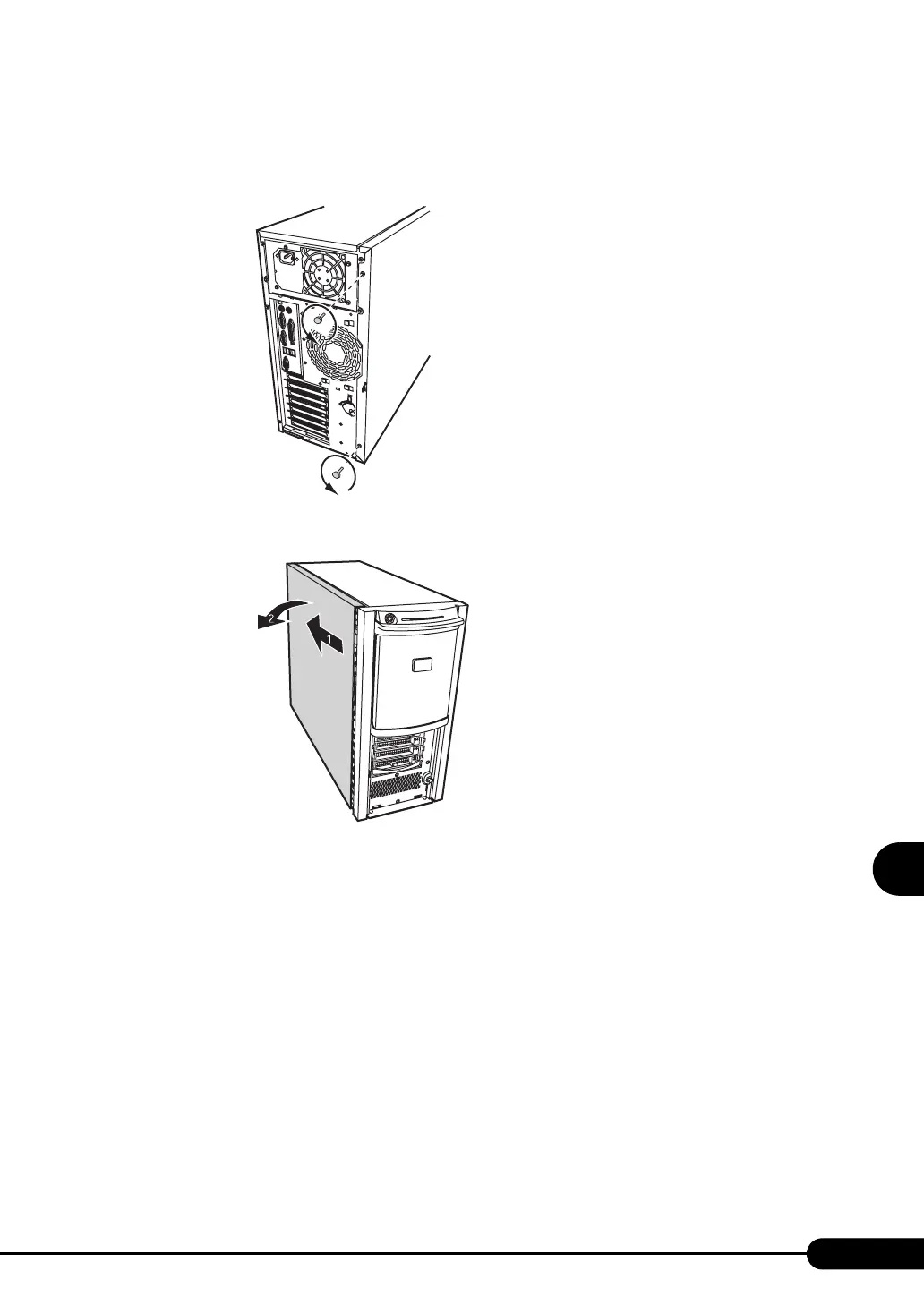 2. Slowly slide the side cover to the rear side, and then tilt it toward you to remove it