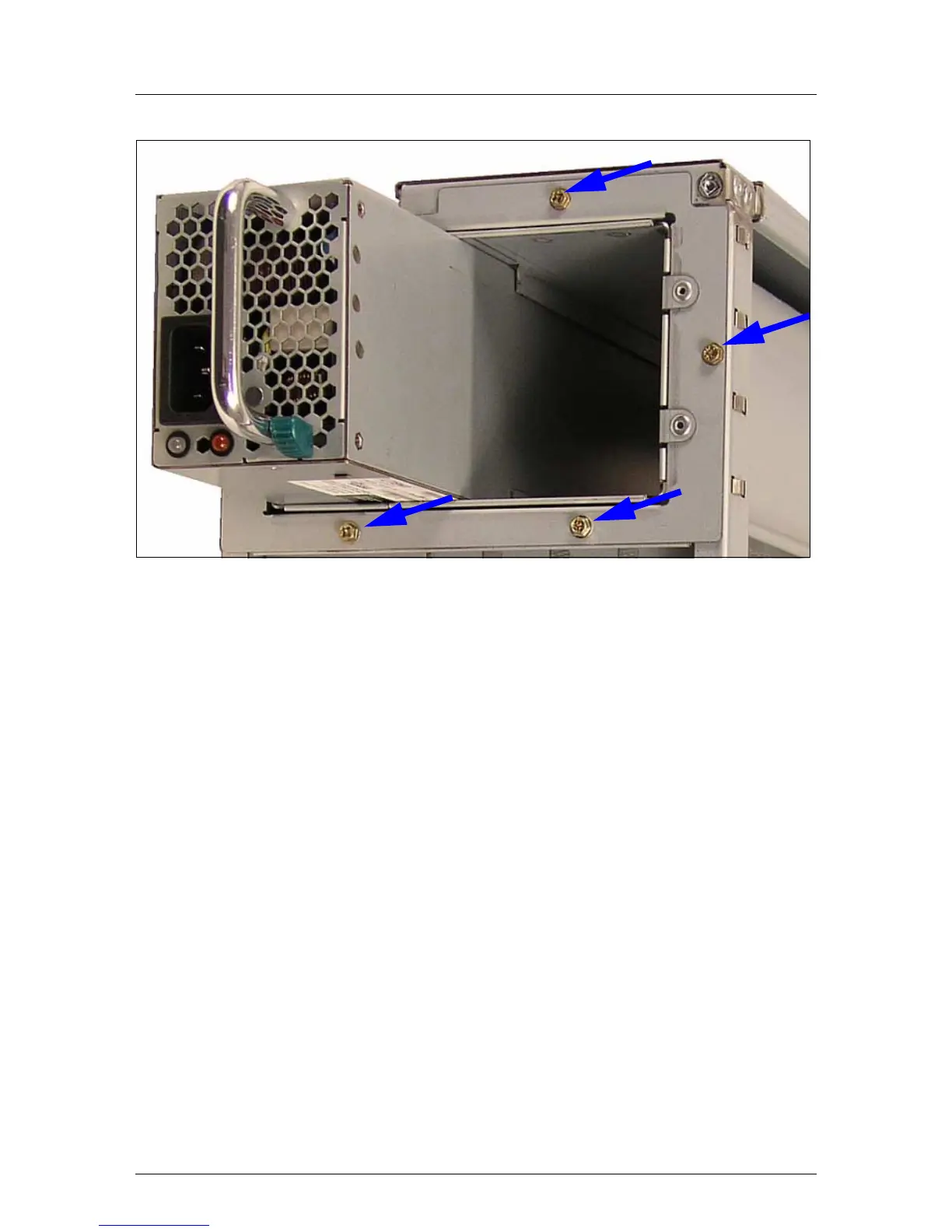 Ê Fasten the PS cage with four screws M3x4.5 mm (see arrows) at the rear