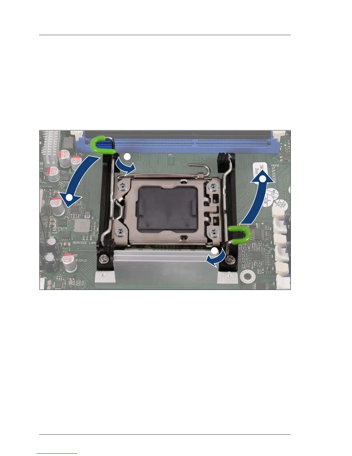 Ê Press the heat sink retaining clips downward and inward to release them (1).