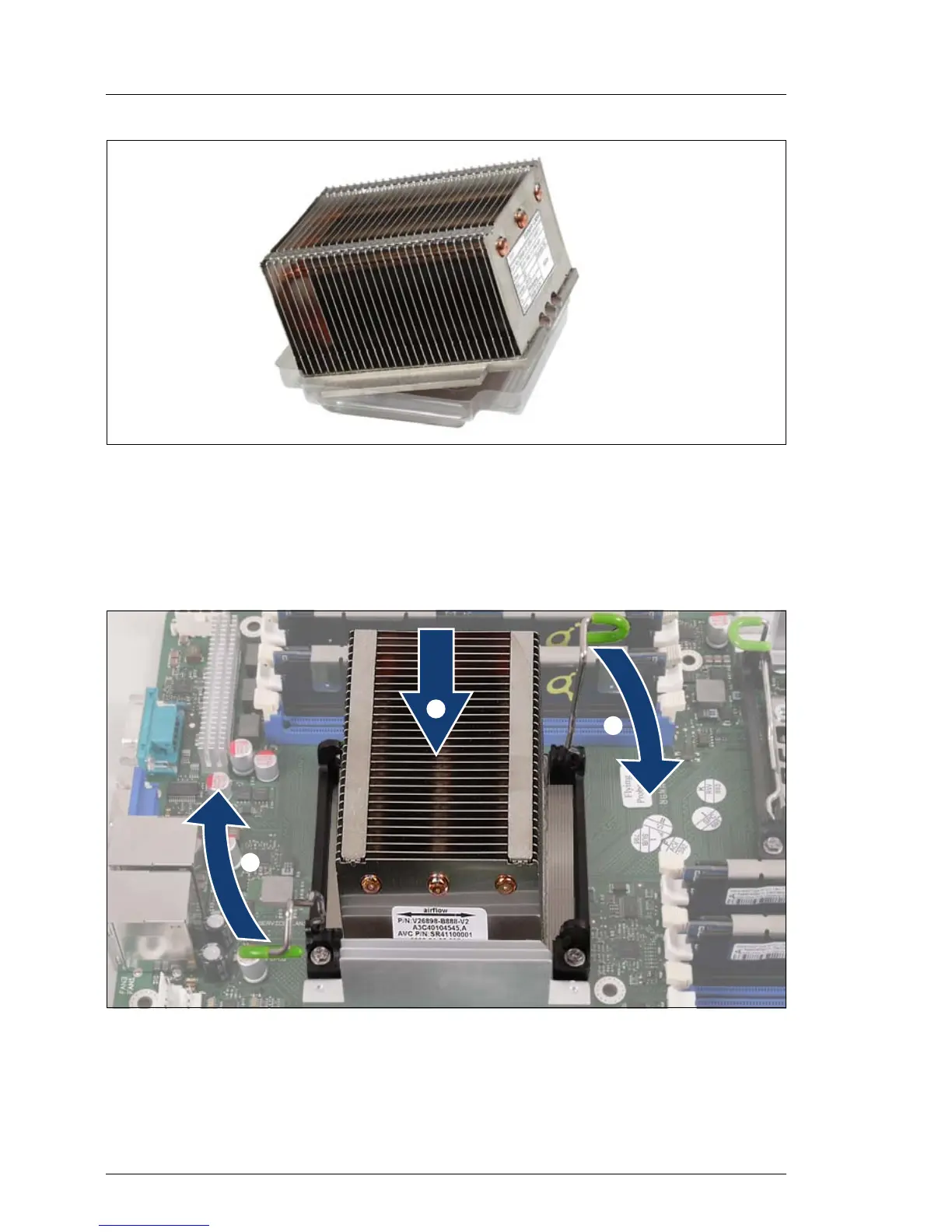 Ê Mount the heat sink on the processor (1) so that the side with the visible