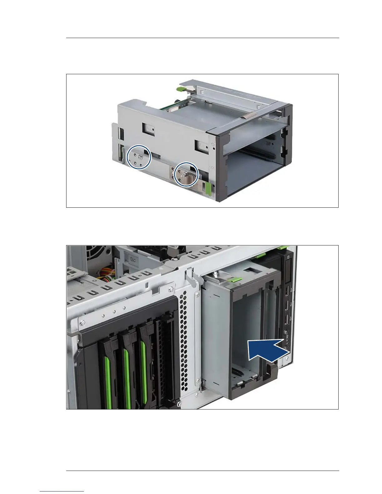 Ê Push the 3.5-inch HDD extension box fully into the two lower bays until the