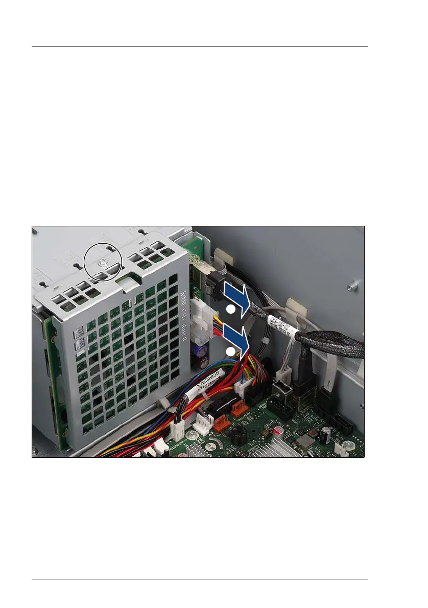 Ê Disconnect the connectors of the SAS/SATA cable (1) and the power cable